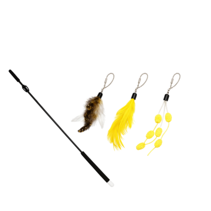 La varita plumas y pompones para gatos es un juguete interactivo diseñado para estimular el instinto de caza, promoviendo el ejercicio y el entretenimiento diario. Incluye cabezales intercambiables que permiten variar el juego y mantener el interés de la mascota.