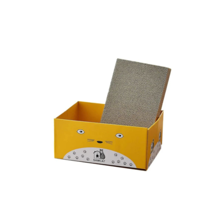 Caja rascadora para gatos fabricada con cartón corrugado resistente, ideal para satisfacer el instinto natural de rascar y evitar daños