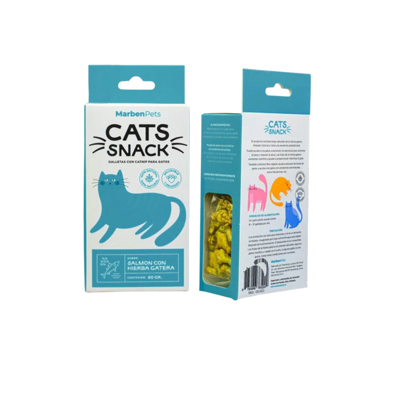 Las Galletas de Salmón con Hierba Gatera son un snack nutritivo y delicioso para gatos, elaborado con proteínas de alta