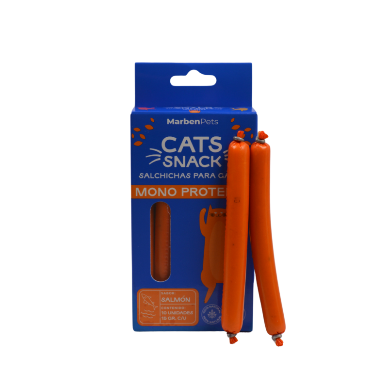Salchichas Monoproteicas de Salmón para Gatos destacan por su sabor intenso y graso, irresistible incluso para los felinos más selectivos.