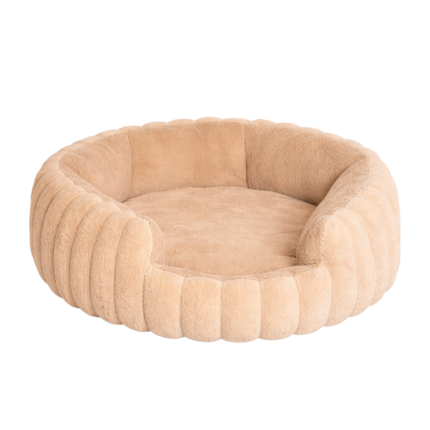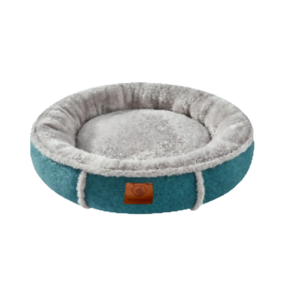 Cama circular color gris con bordes elevados que brindan mayor confort y contención. Ideal para perros y gatos, confeccionada en materiales suaves y resistentes. Disponible en tallas S, M y L.