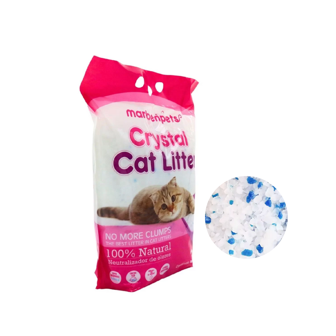 Arena sanitaria Crystal Gel para gatos, elaborada a base de sílica gel ultra absorbente, ideal para un control superior de olores y humedad. Su fórmula permite una mayor duración, manteniendo la bandeja limpia y seca por más tiempo. No forma grumos, reduce bacterias y es fácil de mantener, siendo una excelente opción para hogares con uno o más gatos.