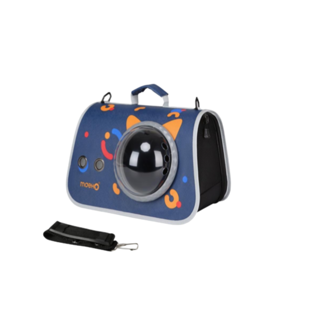 Bolso Space Geo con cúpula transparente para perros y gatos pequeños, diseñado para brindar ventilación, visibilidad y seguridad durante el transporte. Incluye correa de seguridad y estructura firme que mantiene la forma. Ideal para paseos, viajes y transporte urbano, permitiendo que la mascota observe el exterior sin estrés.