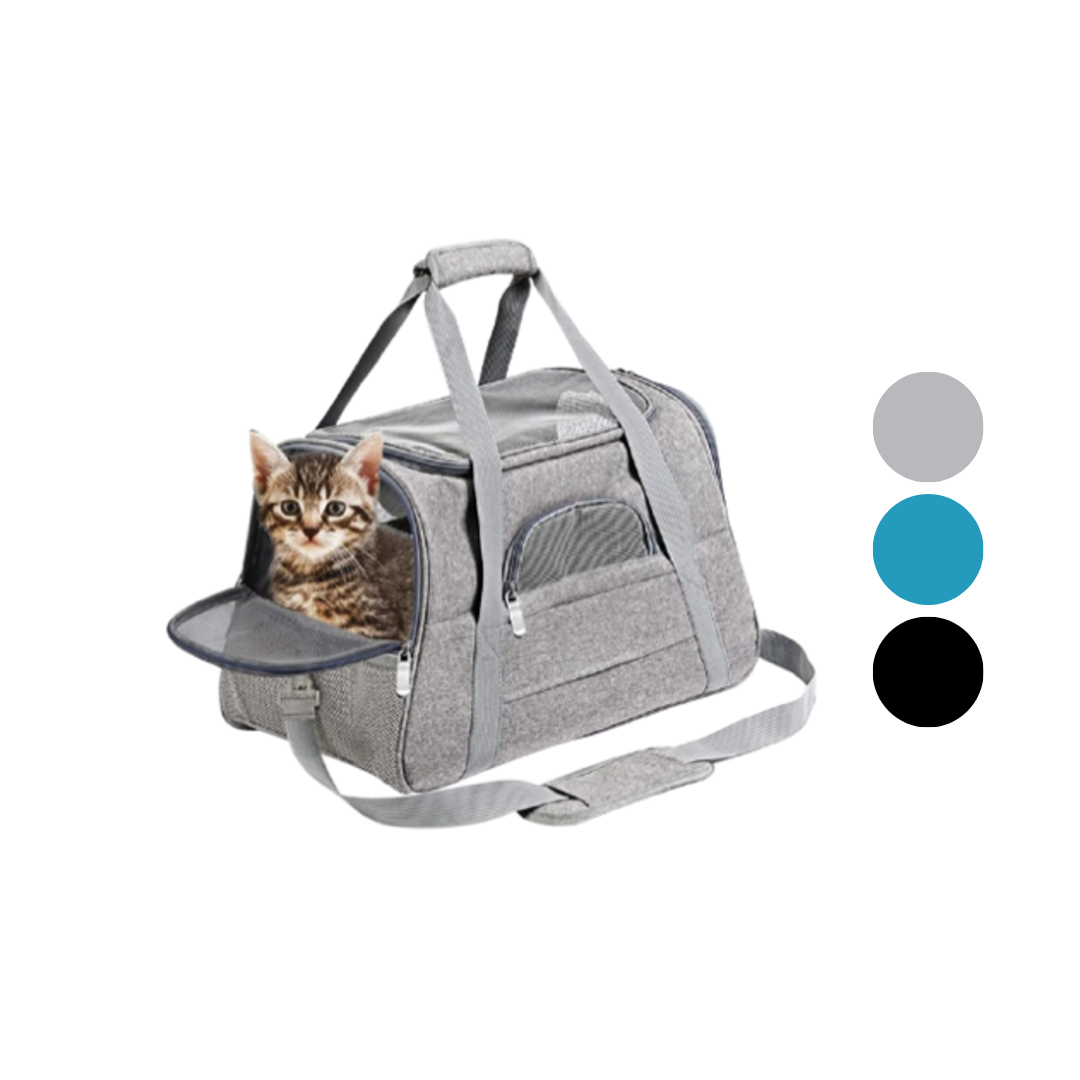 Transportadora tipo bolso para perros y gatos pequeños, ideal para viajes cortos y uso diario. Diseño compacto con paneles de malla que aseguran ventilación, visibilidad y comodidad. Fácil de transportar gracias a sus asas resistentes y estructura liviana.