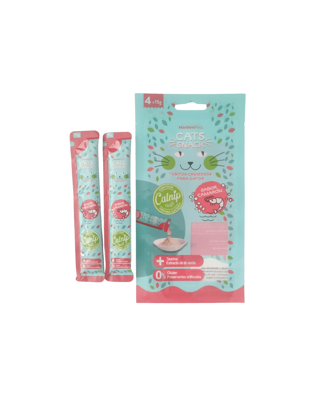 El cremoso de camarón con hierba gatera es un snack ideal para gatos, combinando el sabor irresistible del camarón, que aporta proteínas y ácidos grasos omega-3 beneficiosos para la piel y el pelaje, con el efecto estimulante de la hierba gatera. Este snack no solo nutre, sino que también promueve el juego y reduce el estrés, ofreciendo una experiencia placentera y enriquecedora para tu gato.