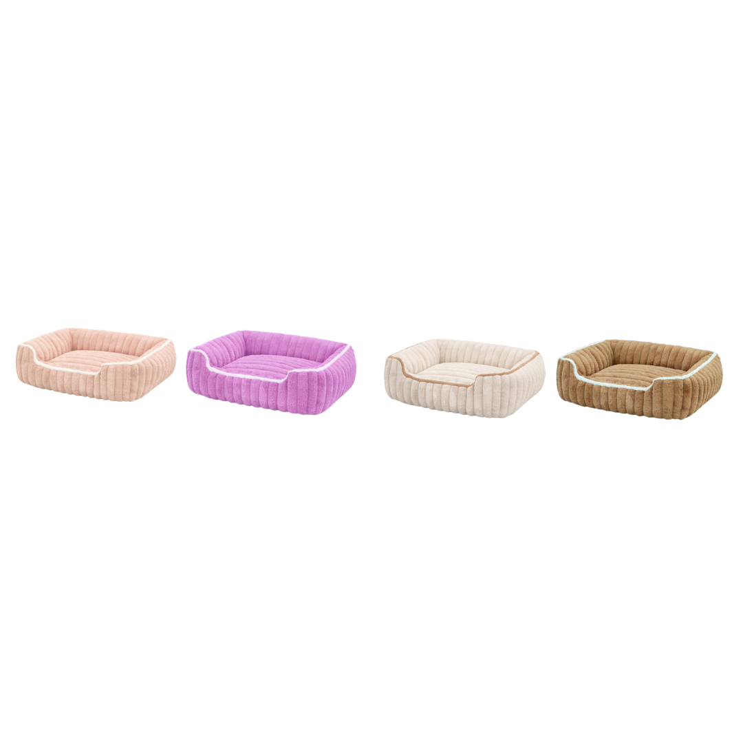 Cama tipo sofá para perros y gatos, ultra suave y cómoda, con bordes elevados y base antideslizante. Disponible en varios tamaños y colores.