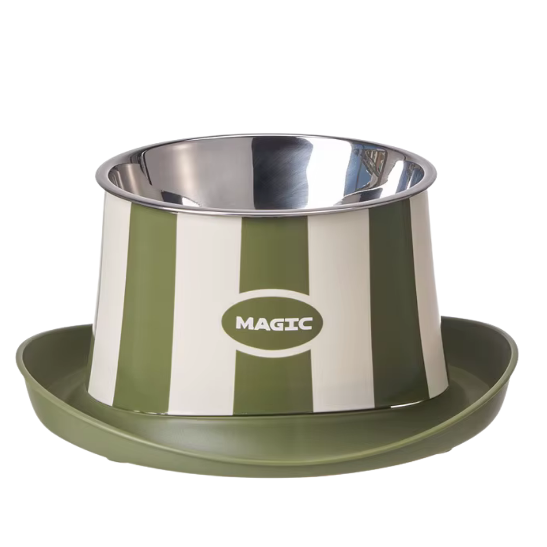 Incorpora un plato de acero inoxidable removible, resistente, higiénico y fácil de limpiar, ideal para el uso diario. Su base tipo “sombrero” no solo aporta estabilidad, sino también un diseño moderno y llamativo que destaca en cualquier espacio.