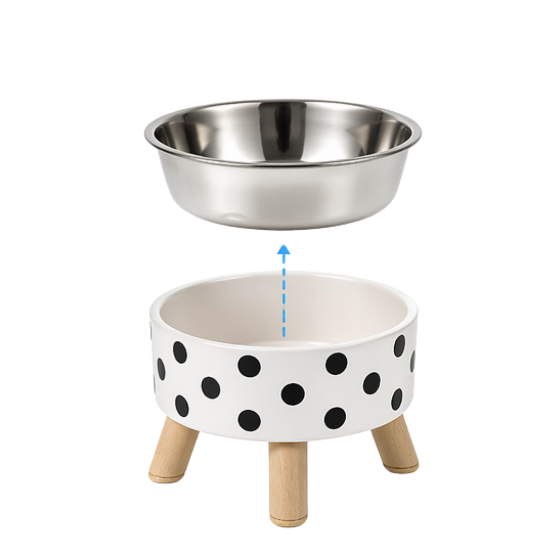 Su estructura elevada mejora la postura al comer, favoreciendo la digestión y reduciendo la tensión en cuello y articulaciones. Incluye un plato removible de acero inoxidable, resistente, higiénico y fácil de limpiar.
