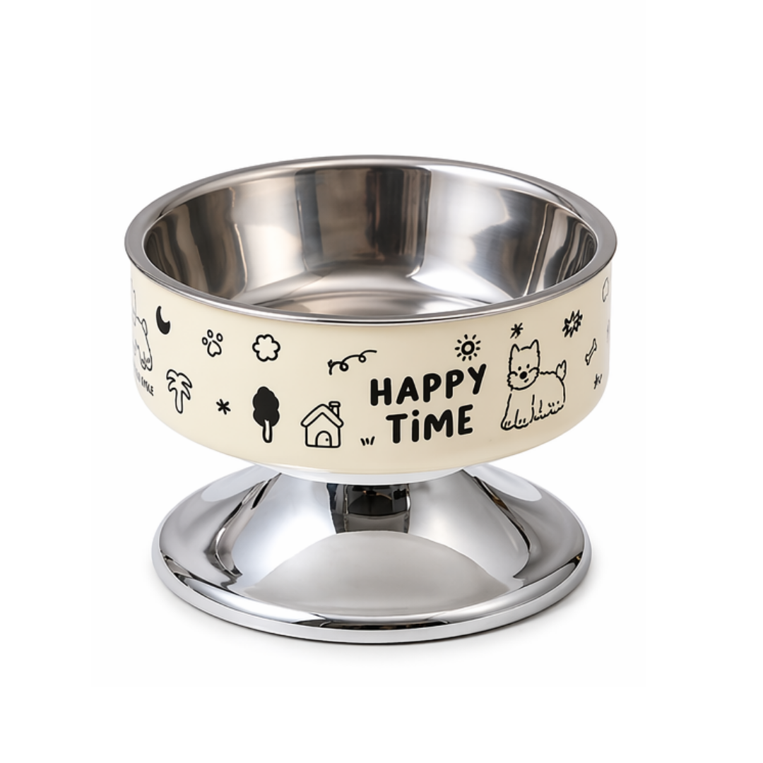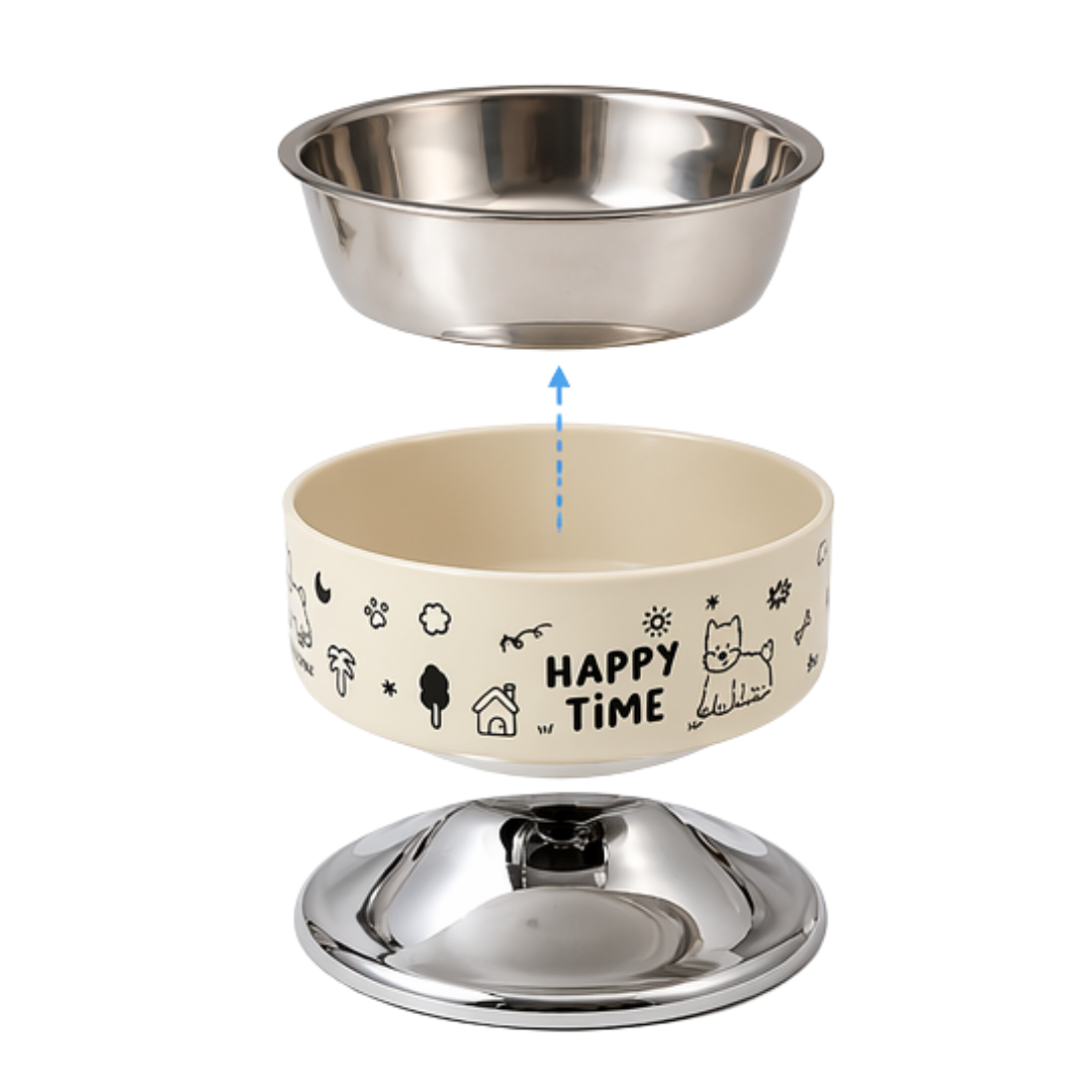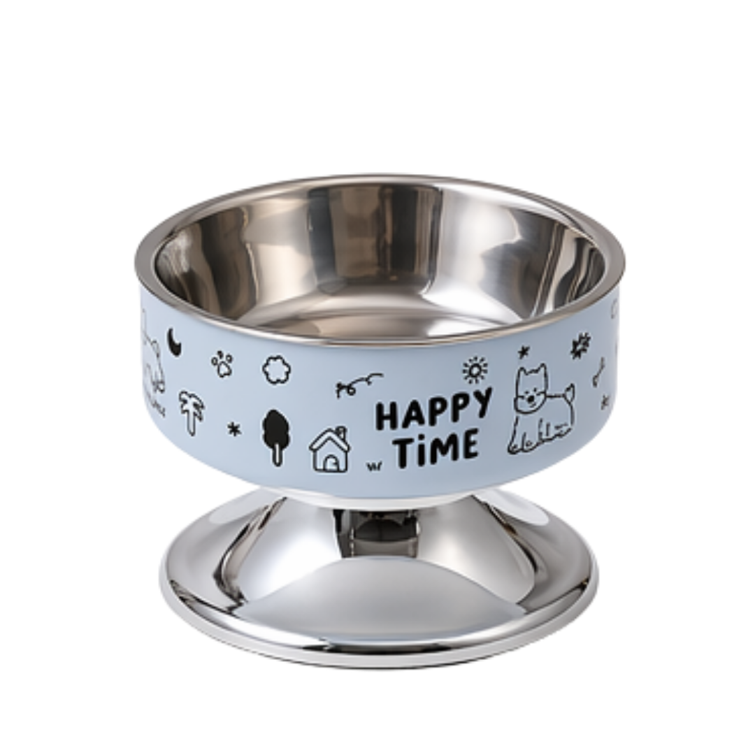 Su estructura elevada ayuda a mantener una postura más natural al comer, favoreciendo la digestión y reduciendo la tensión en cuello y articulaciones. Incorpora un plato de acero inoxidable removible, resistente, duradero y fácil de limpiar, ideal para mantener altos estándares de higiene.