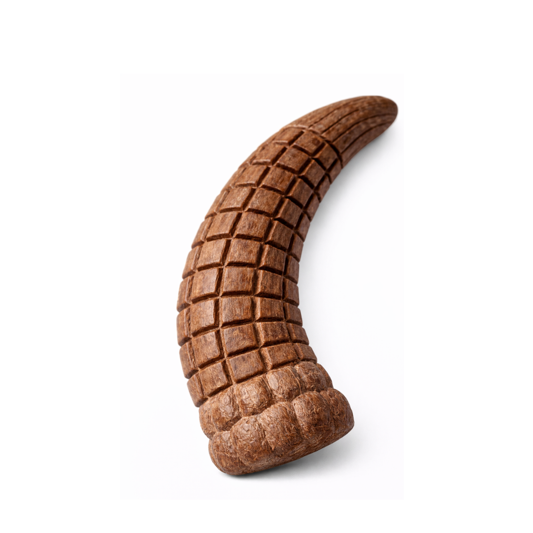 Fabricado con fibra de bambú, destaca por su alta resistencia y durabilidad, siendo ideal para perros medianos con mordida activa. Su diseño tipo cuerno facilita el agarre, permitiendo al perro jugar de forma cómoda mientras mastica.