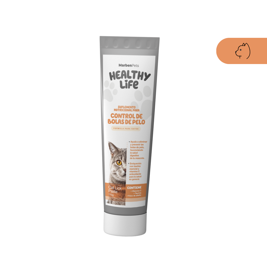Healthy Life Control de Bolas de Pelo para Gatos es un suplemento nutricional funcional en formato pasta desarrollado para apoyar el manejo y la prevención de bolas de pelo como complemento de una alimentación equilibrada.