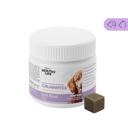 Suplemento nutricional en masticables formulado para ayudar a reducir el estrés y promover la calma en perros. Contiene extracto de ginseng indio (Withania somnifera), valeriana y aminoácidos funcionales que apoyan el equilibrio emocional sin afectar su vitalidad. Alta palatabilidad y fácil administración diaria.