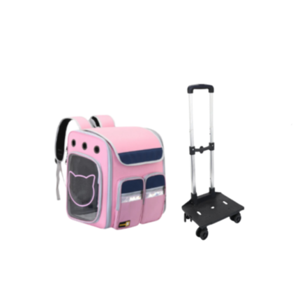 Maleta transportadora para mascotas con carro y ruedas giratorias, ideal para viajes y traslados largos. Cuenta con malla ventilada y
