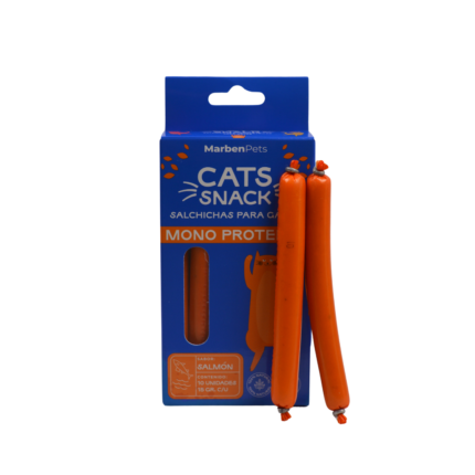 Salchichas Monoproteicas de Salmón para Gatos destacan por su sabor intenso y graso, irresistible incluso para los felinos más selectivos.