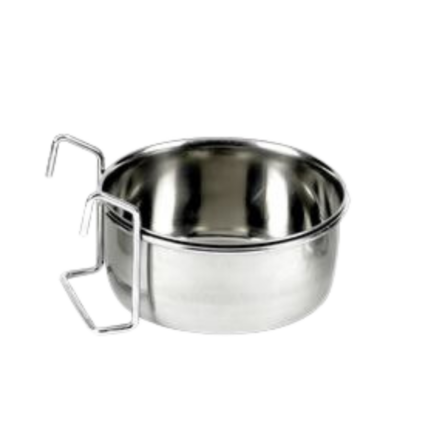 Plato para jaula fabricado en acero inoxidable de alta calidad, ideal para aves y pequeñas mascotas. Su sistema para colgar