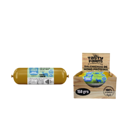 Salchichas de Cordero Monoproteicas TastyFarm son un snack nutritivo elaborado con cordero como única fuente de proteína, ideal para perros