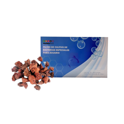 Piedra volcánica natural para acuarios, utilizada como material filtrante biológico. Su estructura porosa permite el desarrollo de bacterias nitrificantes que