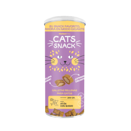 Snack para gatos sabor atún con queso en formato maxi 200g. Crujiente por fuera y con relleno cremoso, combina proteínas de calidad y excelente palatabilidad.