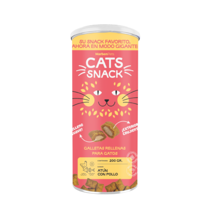 Snack relleno para gatos sabor atún con pollo en formato maxi 200g. Aporta proteínas y omega-3 que contribuyen al bienestar general y cuidado de piel y pelaje.