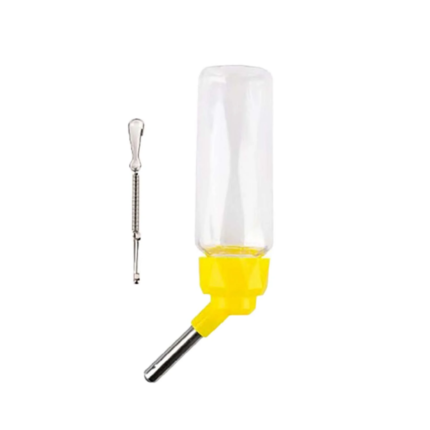 Bebedero colgante para pequeñas mascotas, ideal para hámsters, conejos y roedores. Cuenta con boquilla metálica resistente y sistema antigoteo. Capacidad